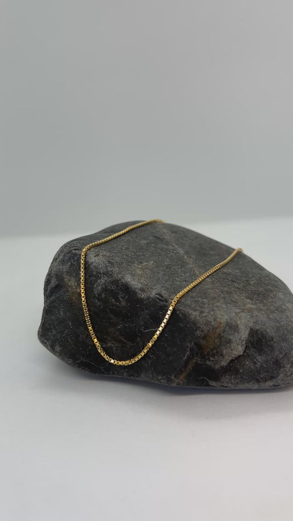 Crafted from sterling silver and finished with a yellow gold plating, this 1.25mm box chain combines durability with sophisticated style. Available in lengths ranging from 16" to 30", it provides flexible options for layering or wearing alone. Its precise construction ensures a smooth, polished look suitable for both everyday wear and special occasions.