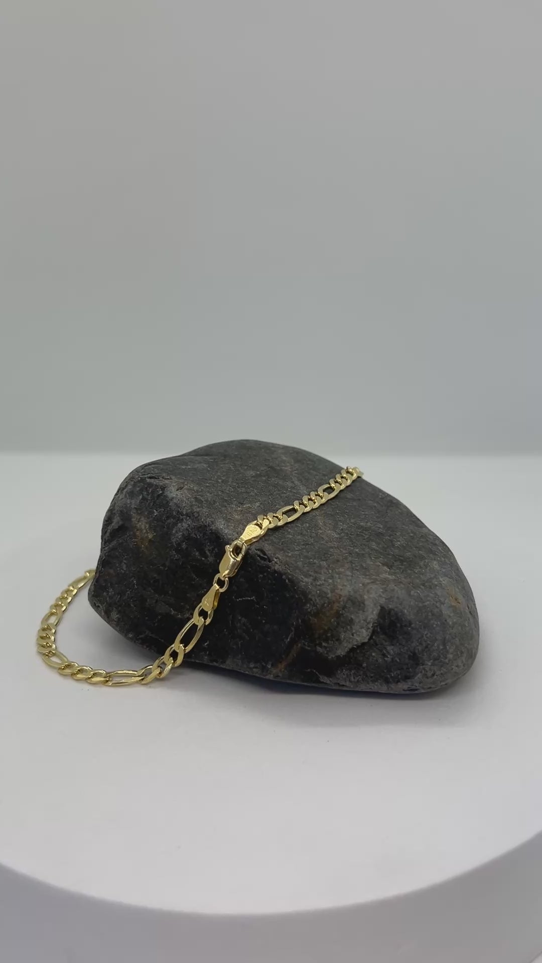 The Pave Figaro pattern offers a dazzling, contemporary twist on the traditional 3-plus-1 alternating link style, enhanced by our exclusive yellow gold plating on genuine sterling silver. Featuring our distinctive gold finish and a reliable lobster claw clasp, it is available in your chosen length for an ideal fit—all at a competitive price.
