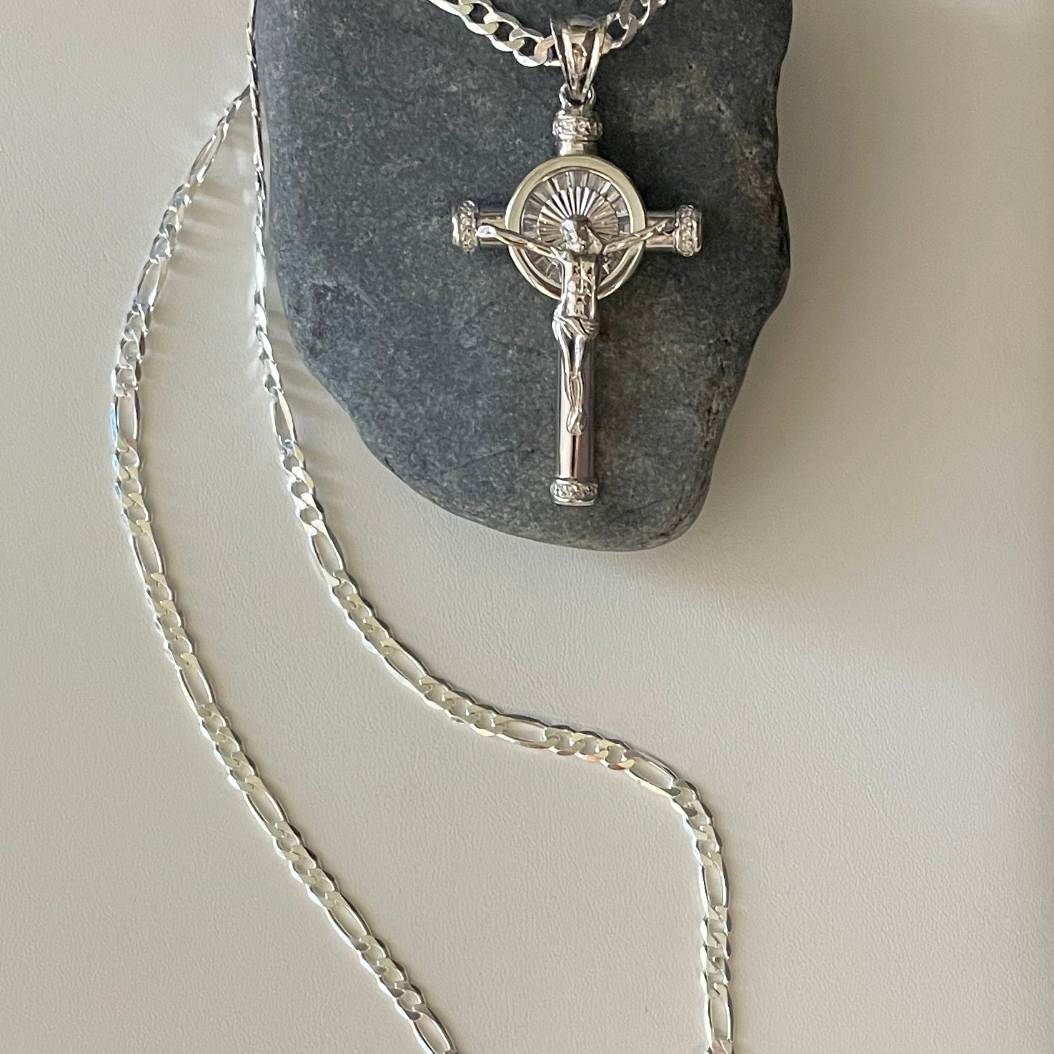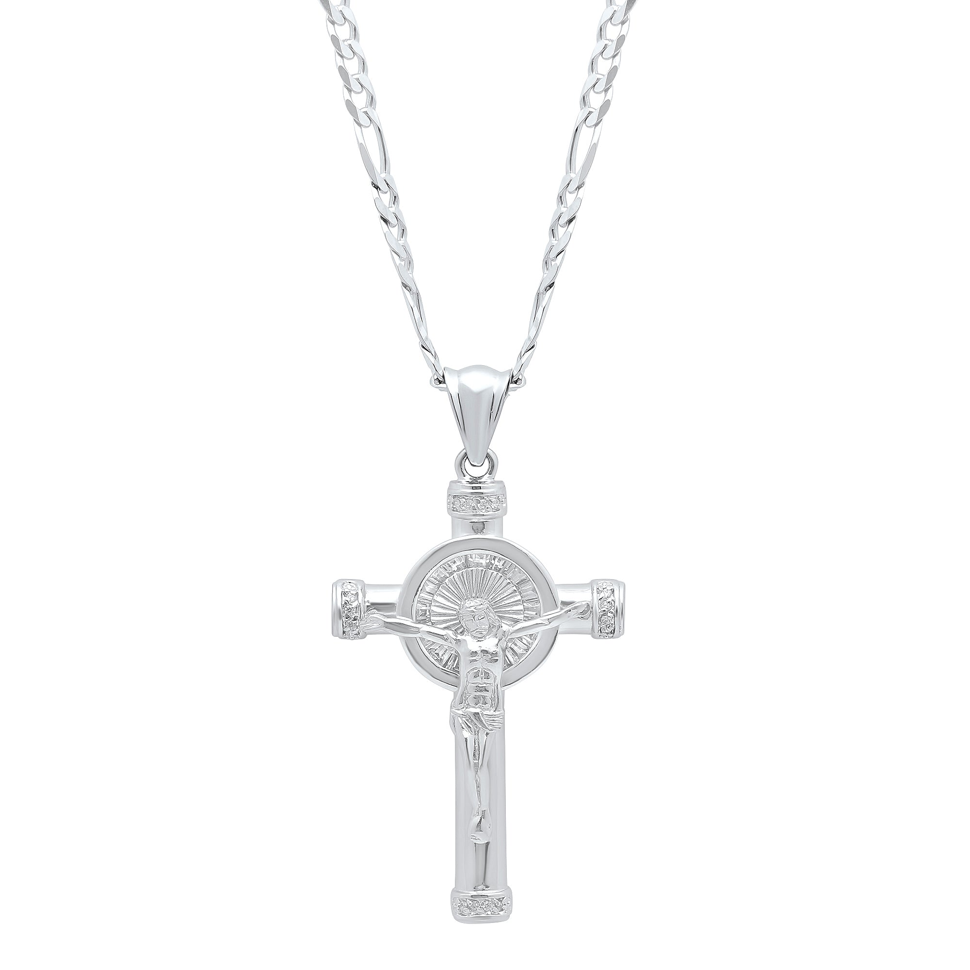 Sterling Silver Cubic Zirconia Baguette Crucifix Necklace
