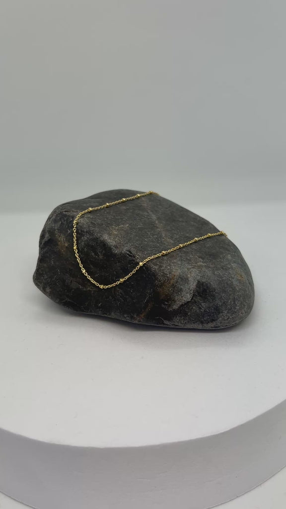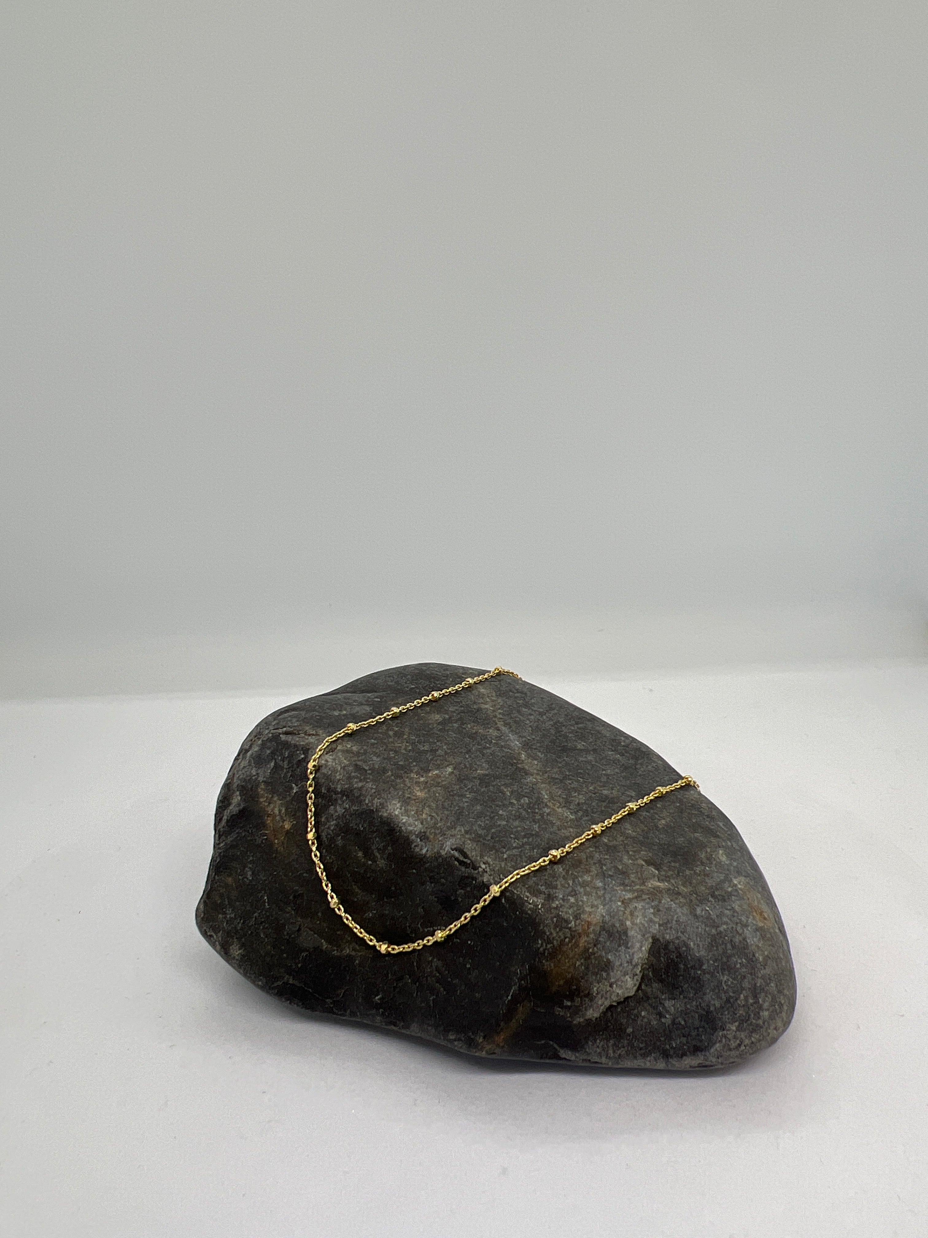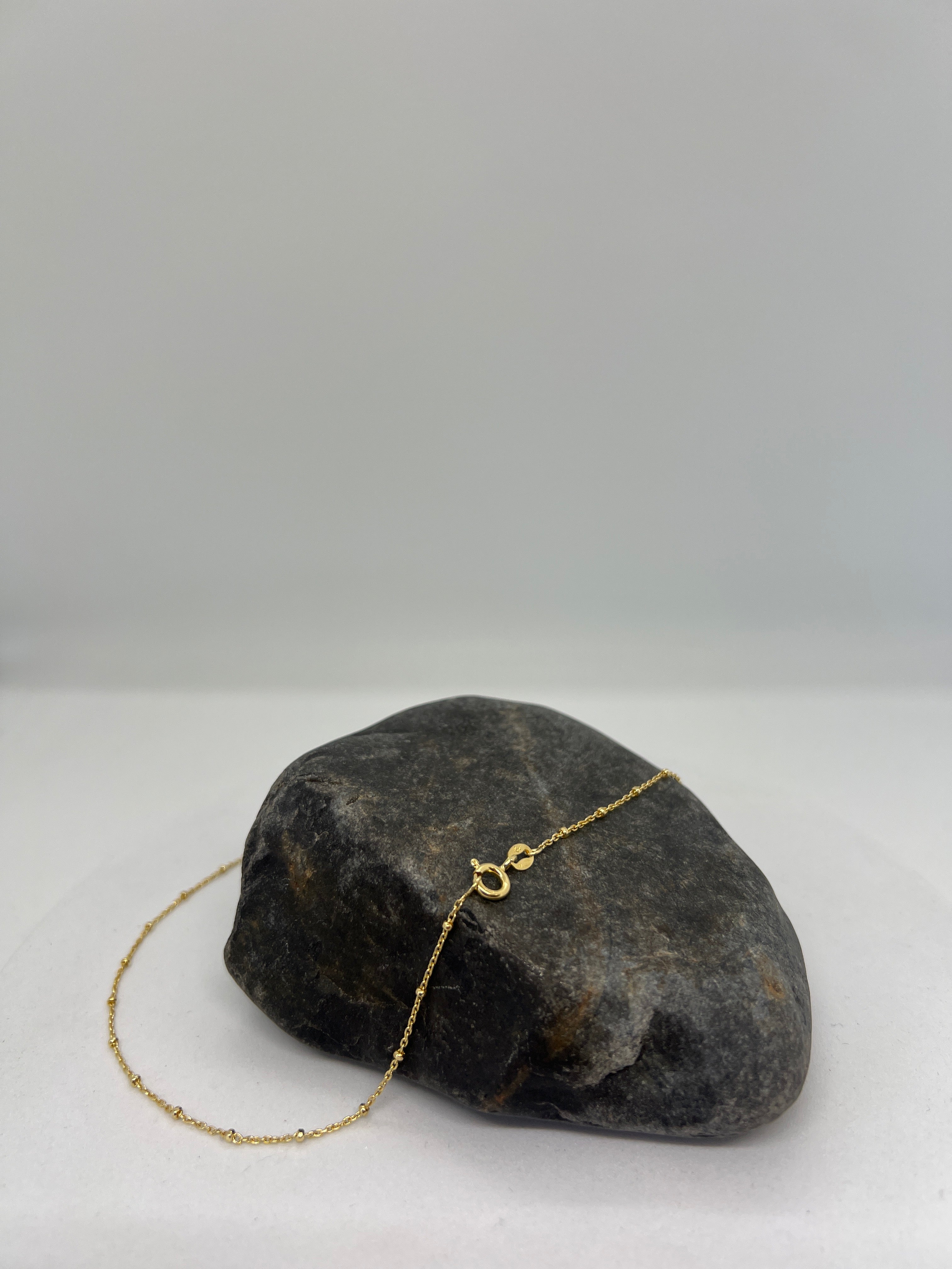 Sparking stand alone or perfect pendant and layering piece. This beautiful Italian import has 1.5mm alternating bead stations that are inspired by the rosary. Also available in Yellow Gold Plating.