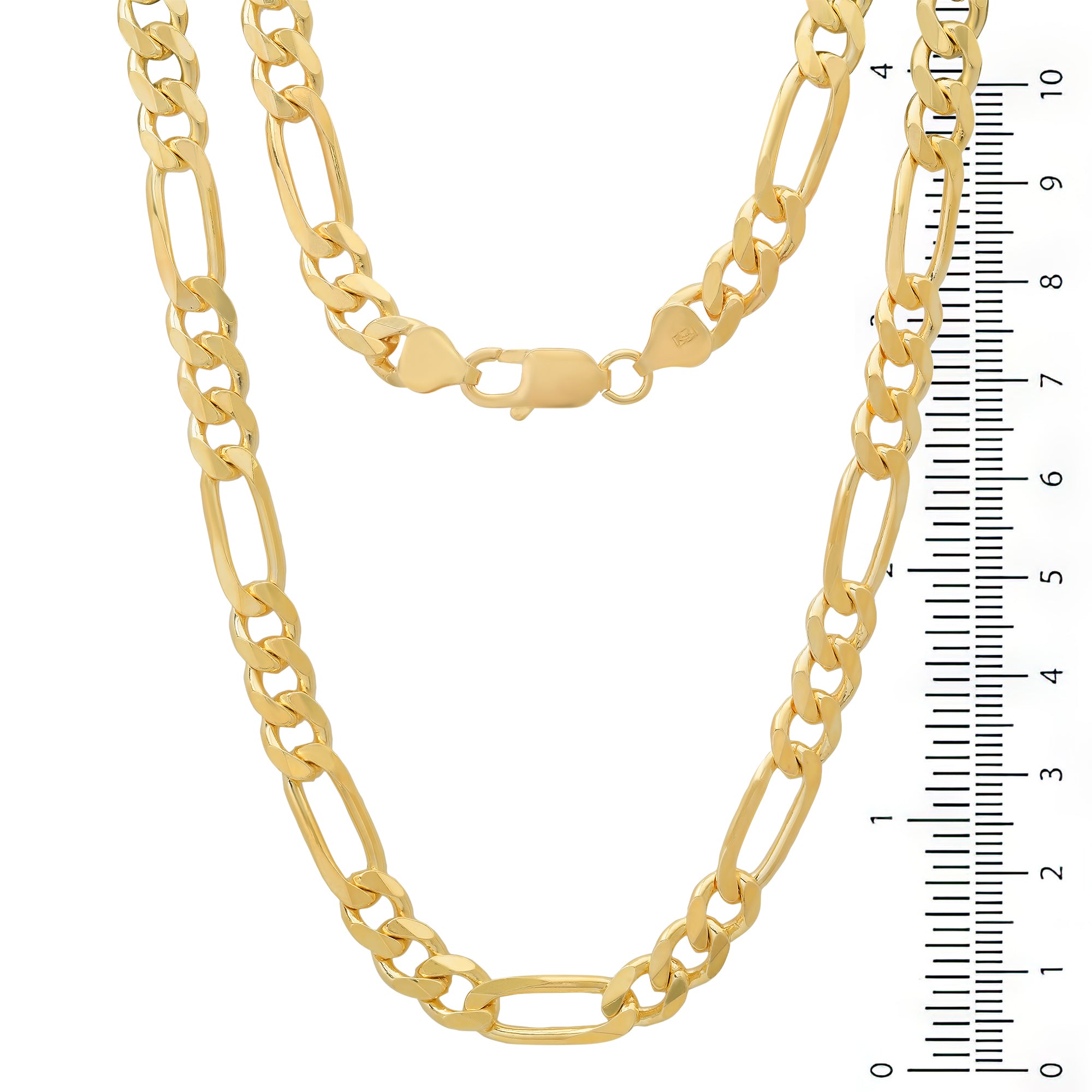 Sterling Silver Yellow Gold Plated Pave Figaro Chain 7mm (18"-30")