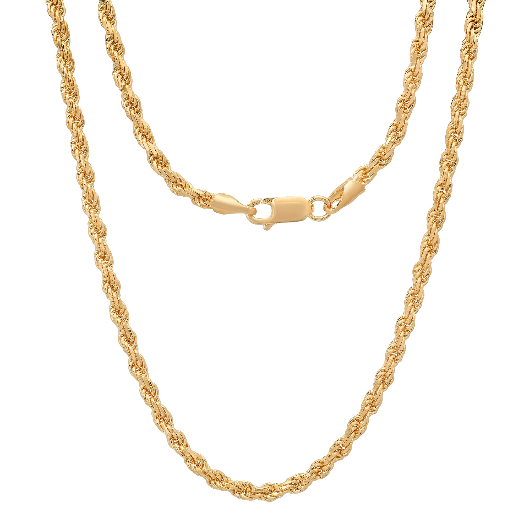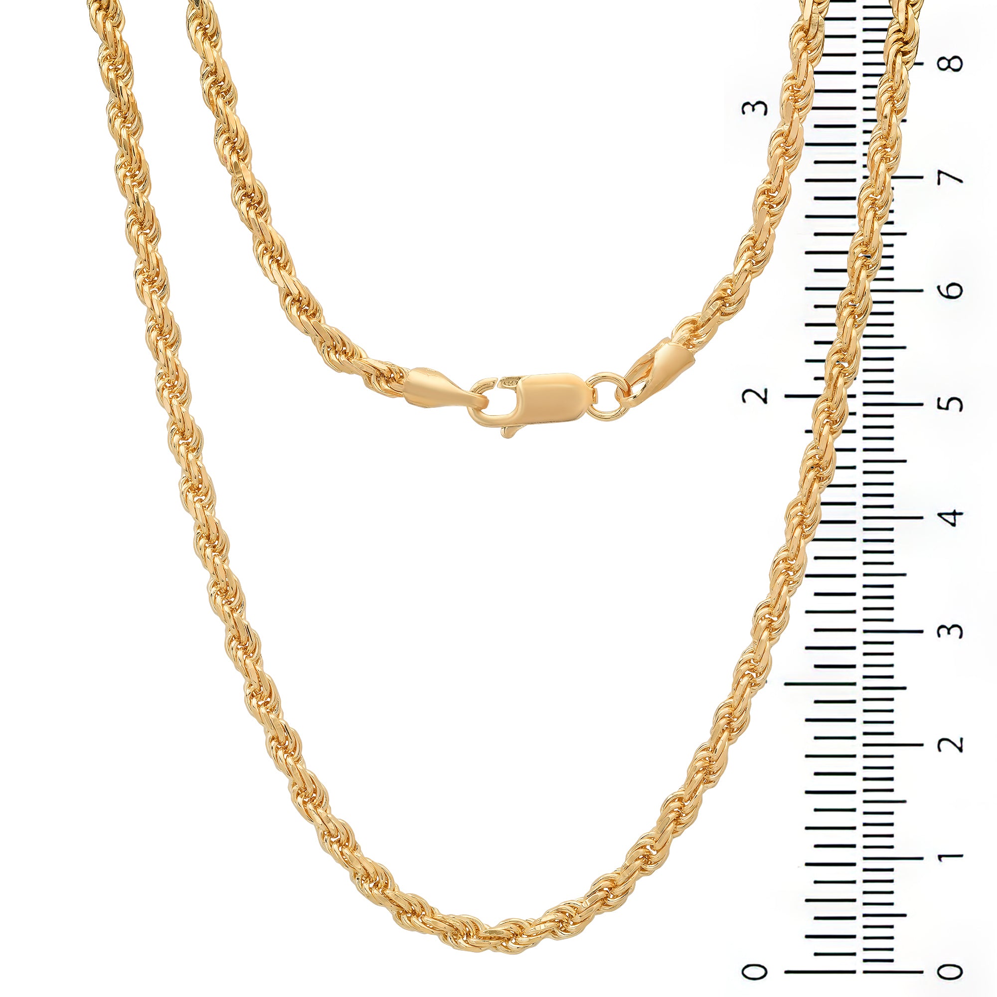 Sterling Silver Yellow Gold Plated Rope Chain 3mm (16"-30")