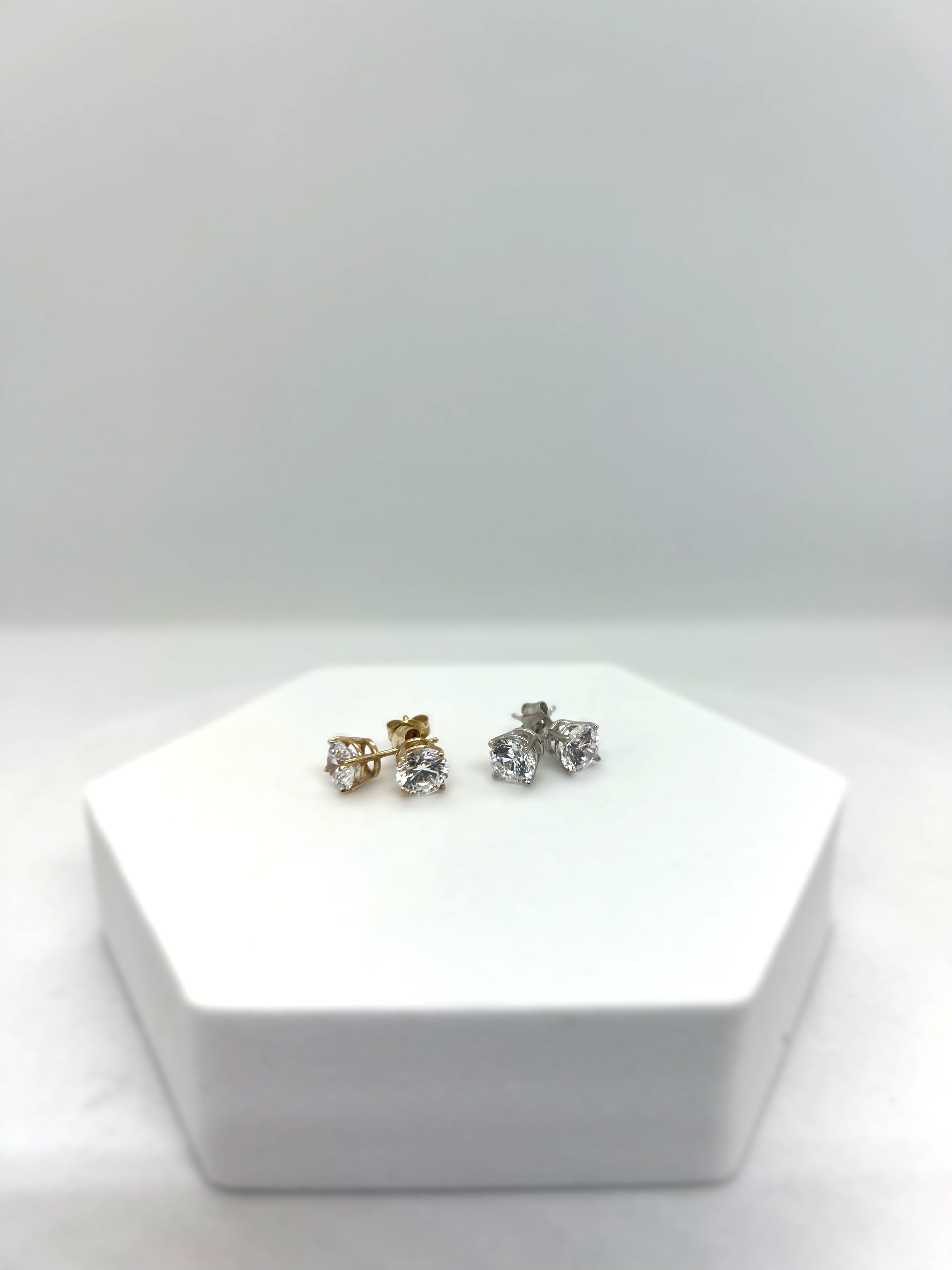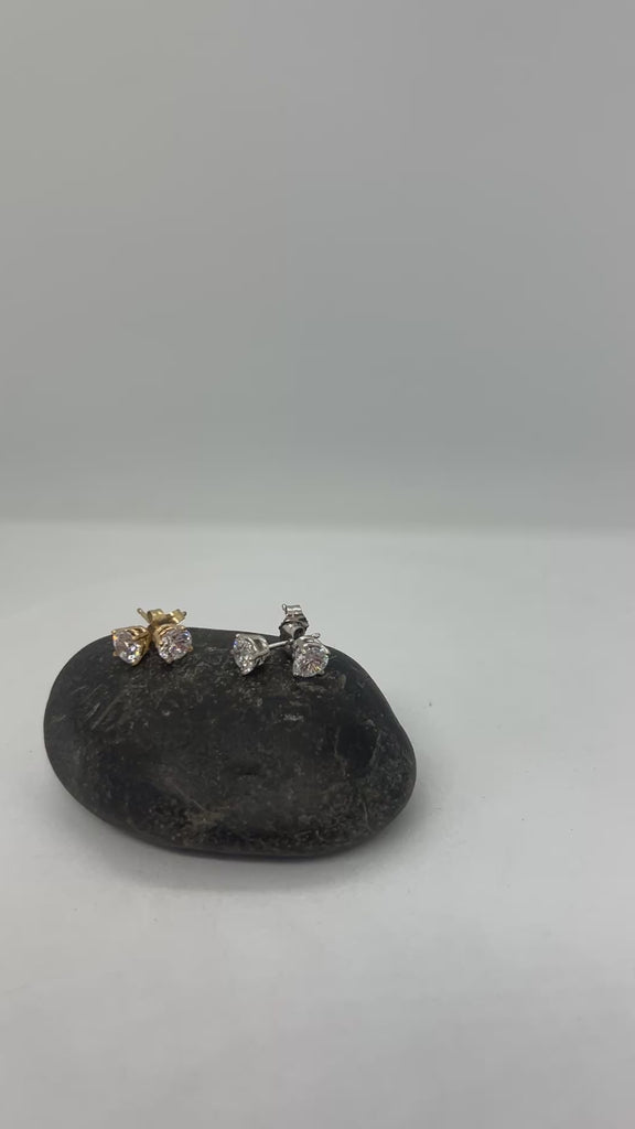 Cubic Zirconia is a diamond simulant made of man-made material but with many of the same properties as a natural diamond. This diamond jewelry look can be yours for a fraction of the cost! Set in a precious 14 karat gold with a 4-prong setting. Your choice of yellow or white gold. These AAA quality white CZ stud earrings are sure to be your new affordable luxury accessory.