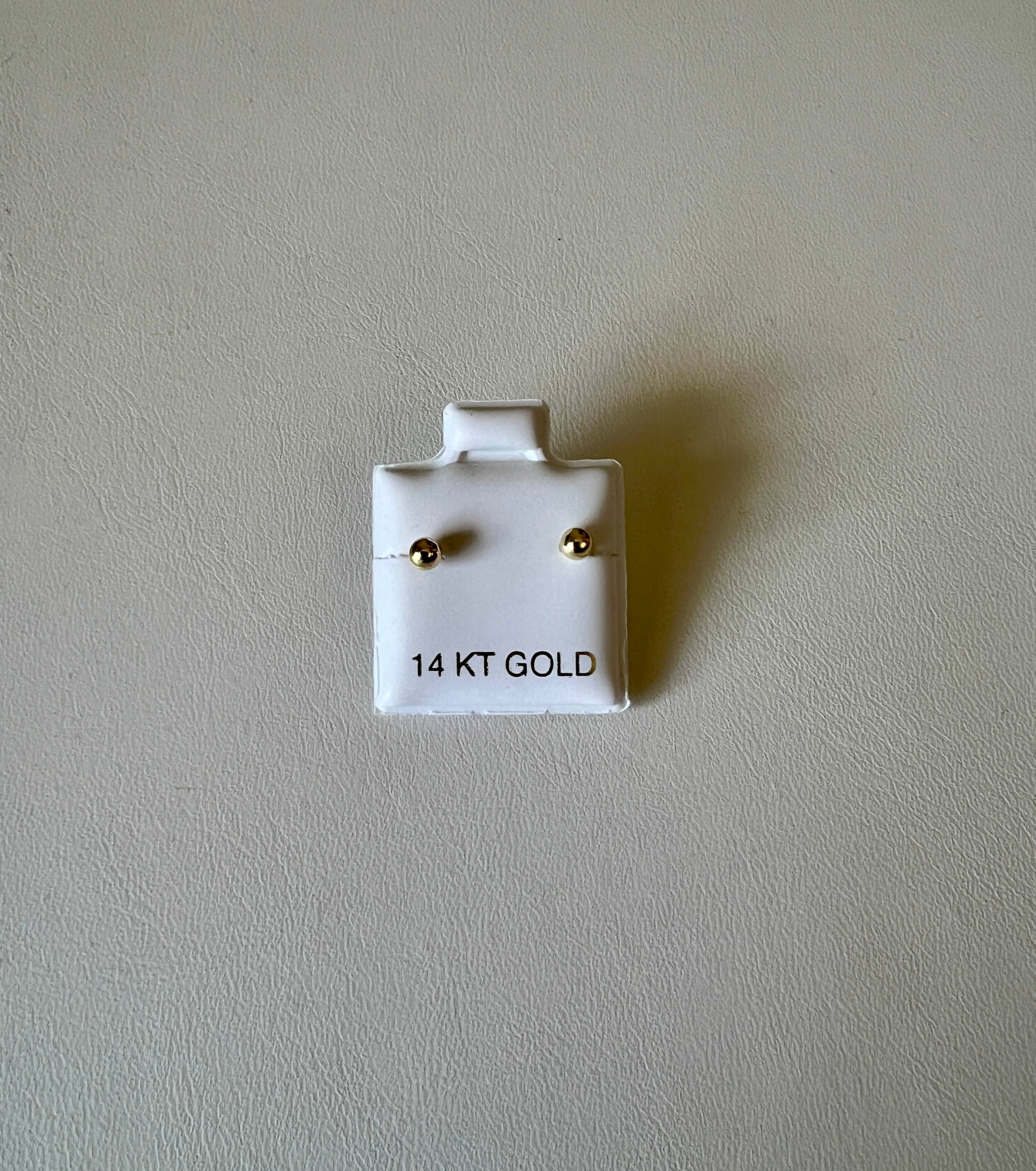14K Yellow Gold 3 mm Baby Ball Stud Earring