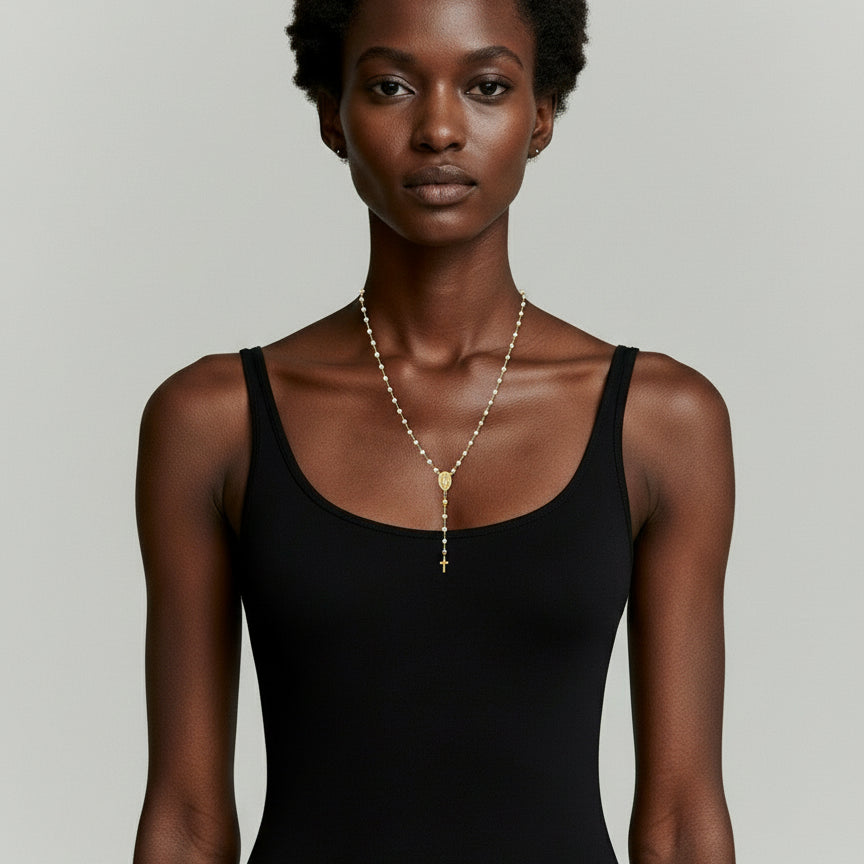Yellow Gold Platinum Plated Bullet Chain Rosary Necklace