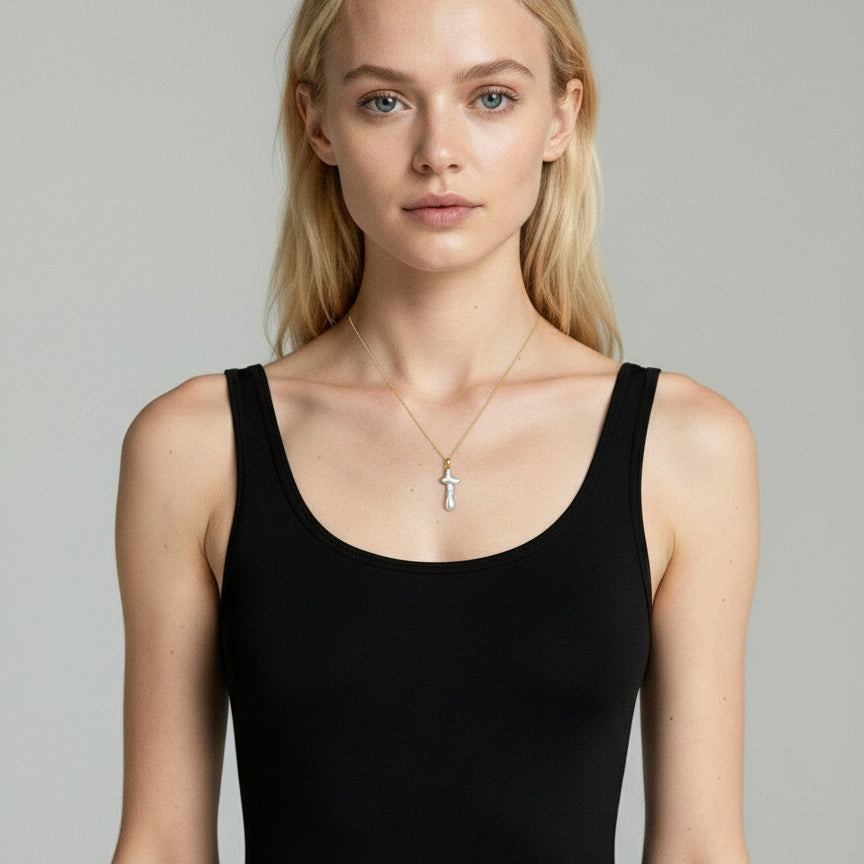 Gold Plated Silver Mother of Pearl Cross Necklace