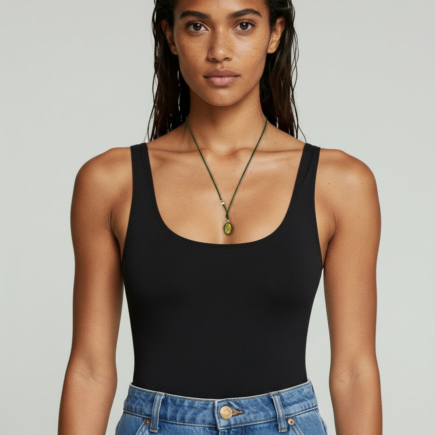 Gold Plated Silver Mary Necklace with Green Cord & Pearl Accent